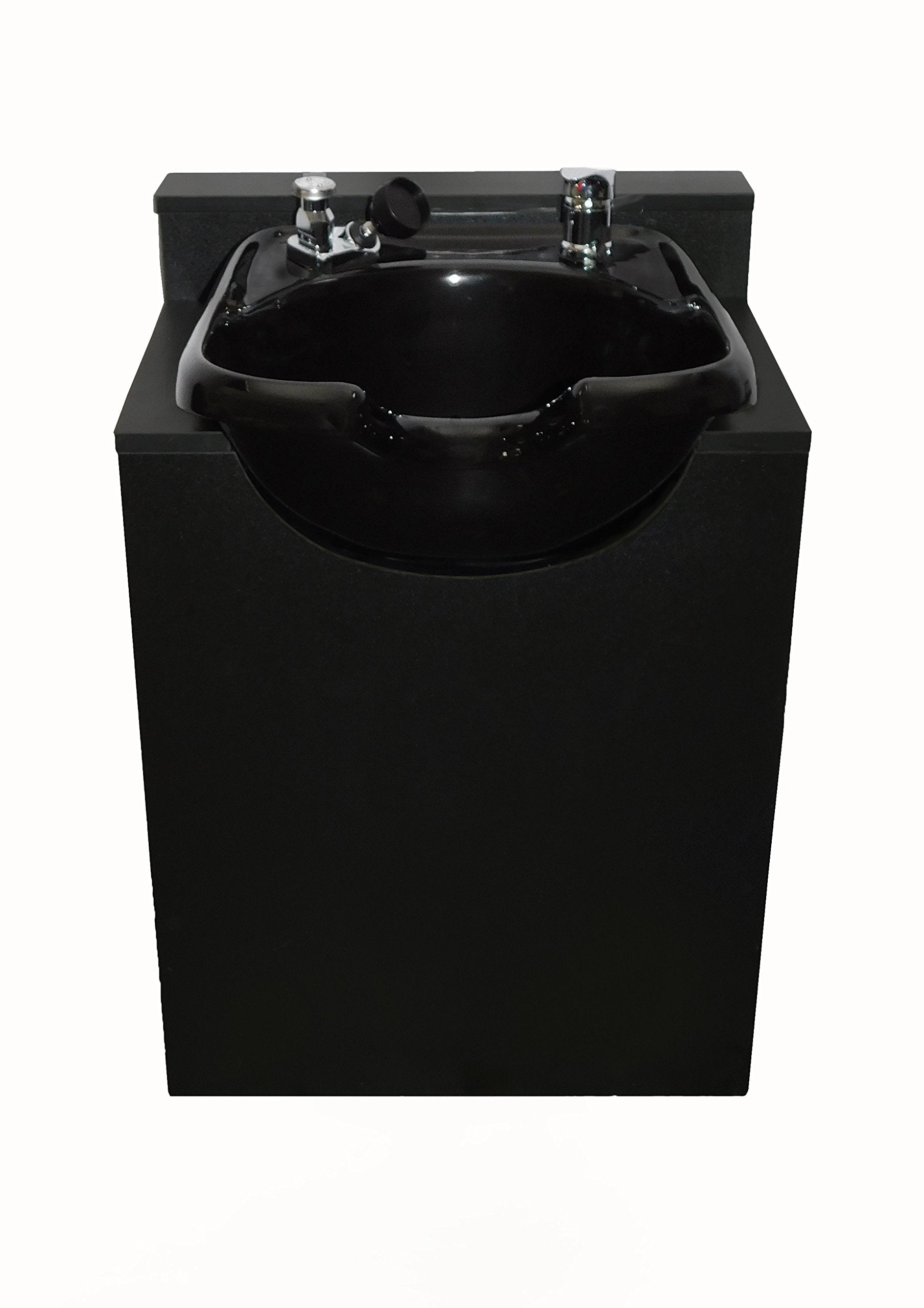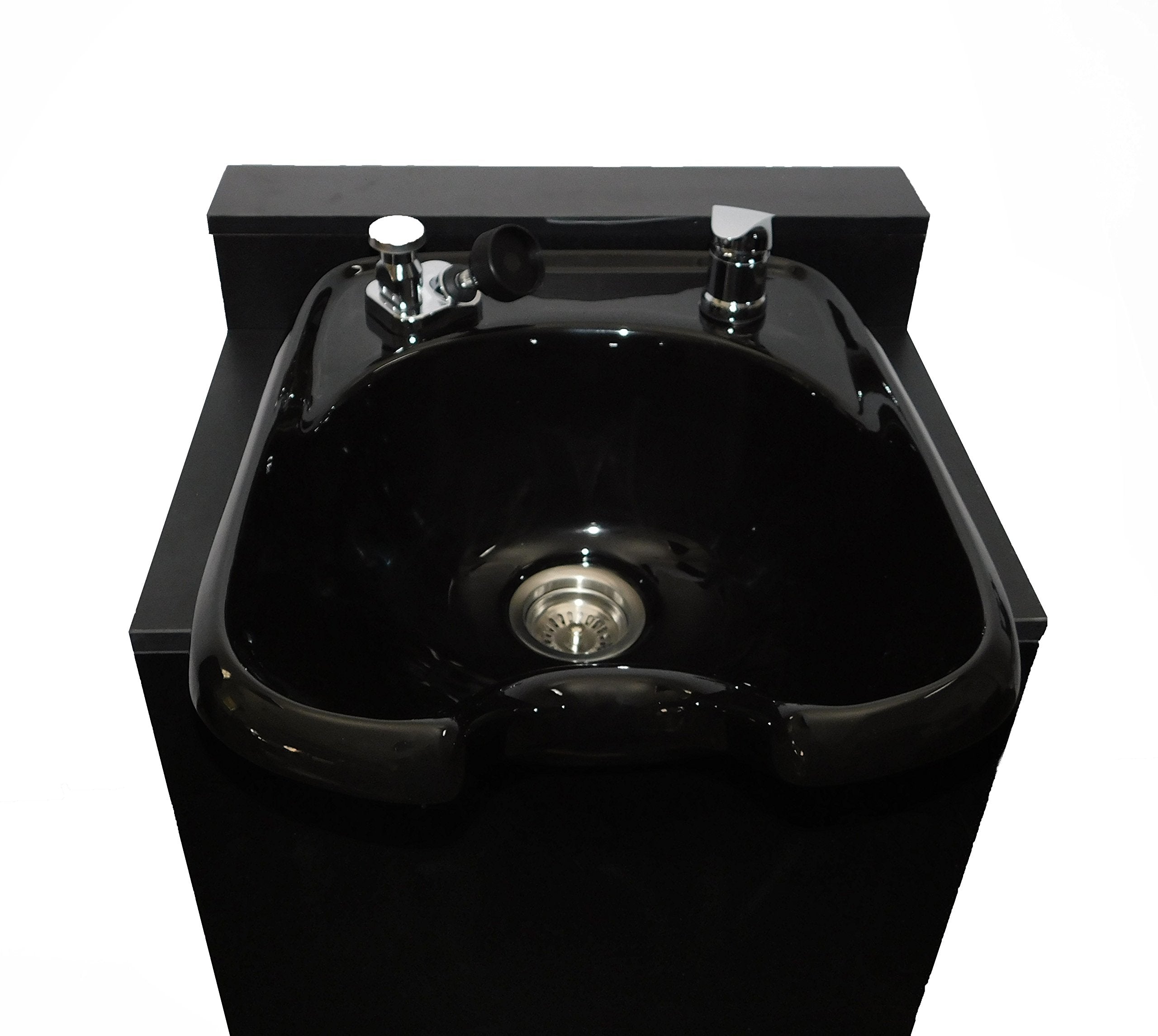 Create a stunning focal point in your salon with this streamline black ceramic shampoo bowl and matching floor cabinet. This complete backwash station delivers sophisticated style and professional functionality in one striking package.