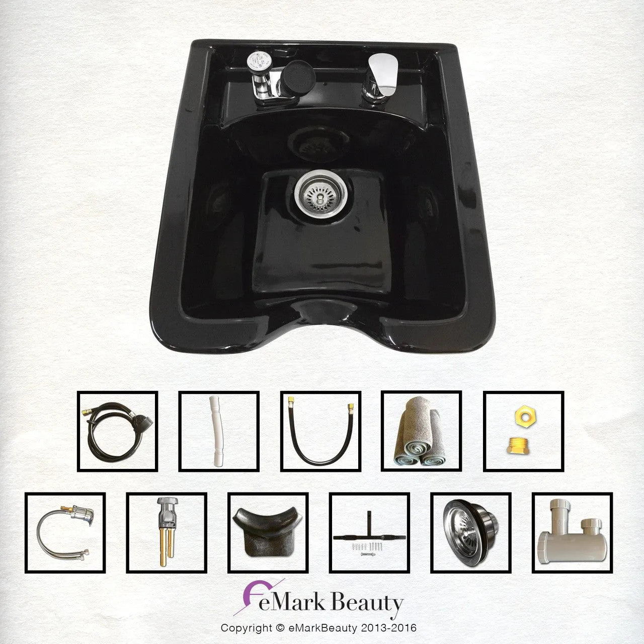 Square Black ABS Plastic Shampoo Bowl for Salons and Barbershops - Modern Professional Sink