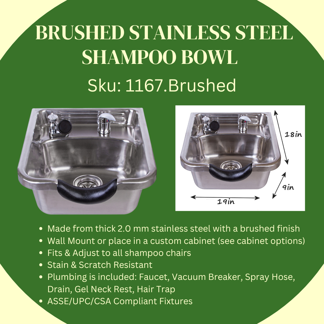 The professional standard for durability, hygiene, and lasting value. This brushed finish stainless steel shampoo bowl is built for high-volume salons that demand equipment capable of withstanding years of daily use while maintaining a sophisticated, professional appearance.