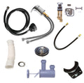 Plumbing parts kit includes faucet, spray hose, vacuum breaker, drain assembly, hair trap